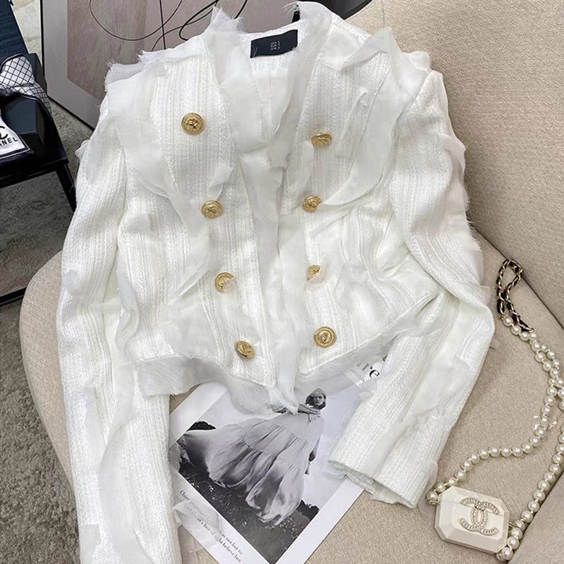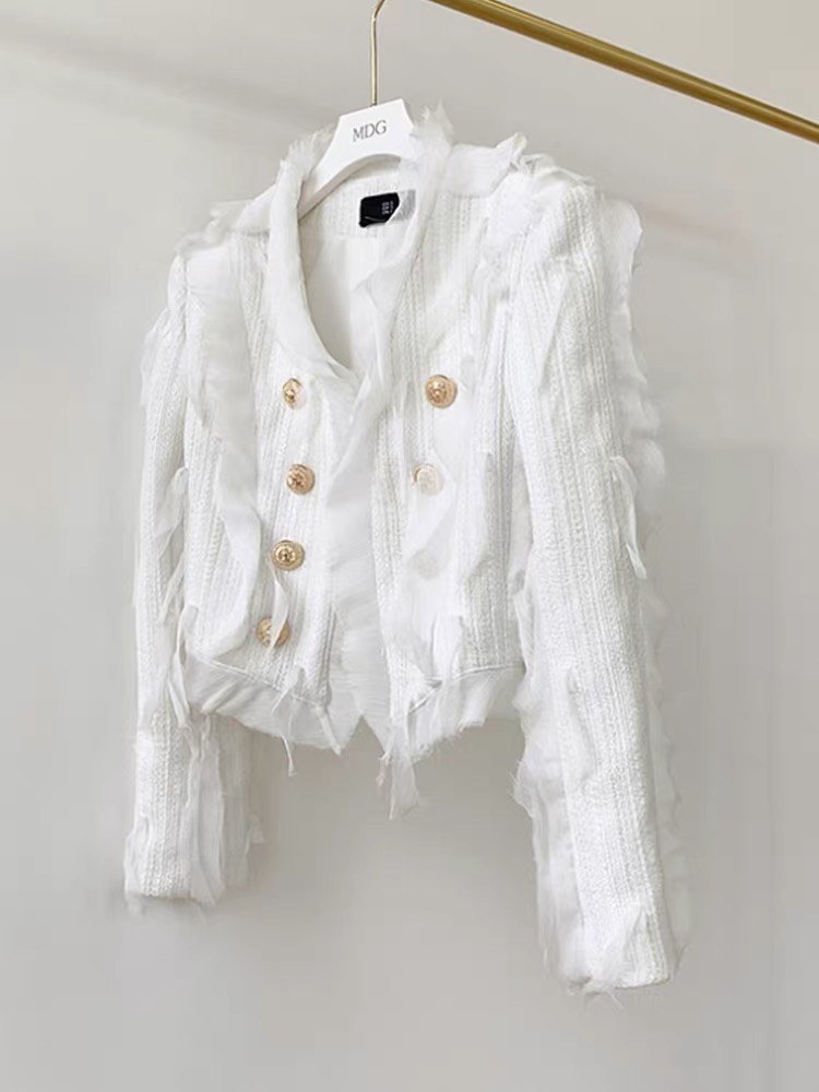 Весенний жакет с декором и золотыми пуговицами